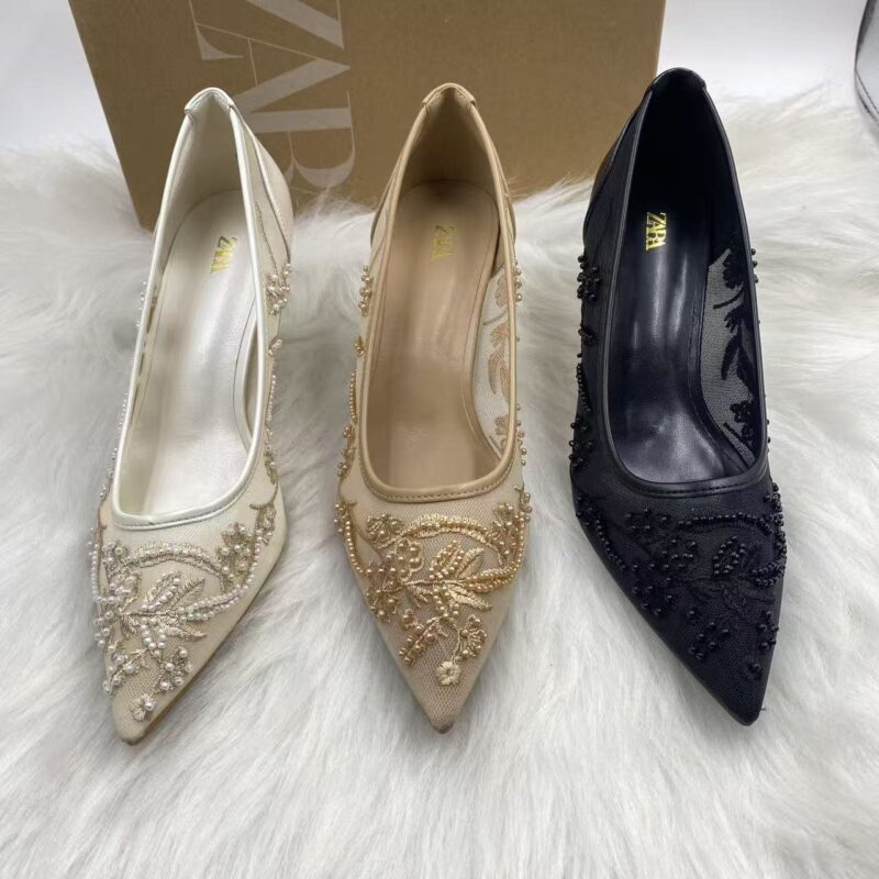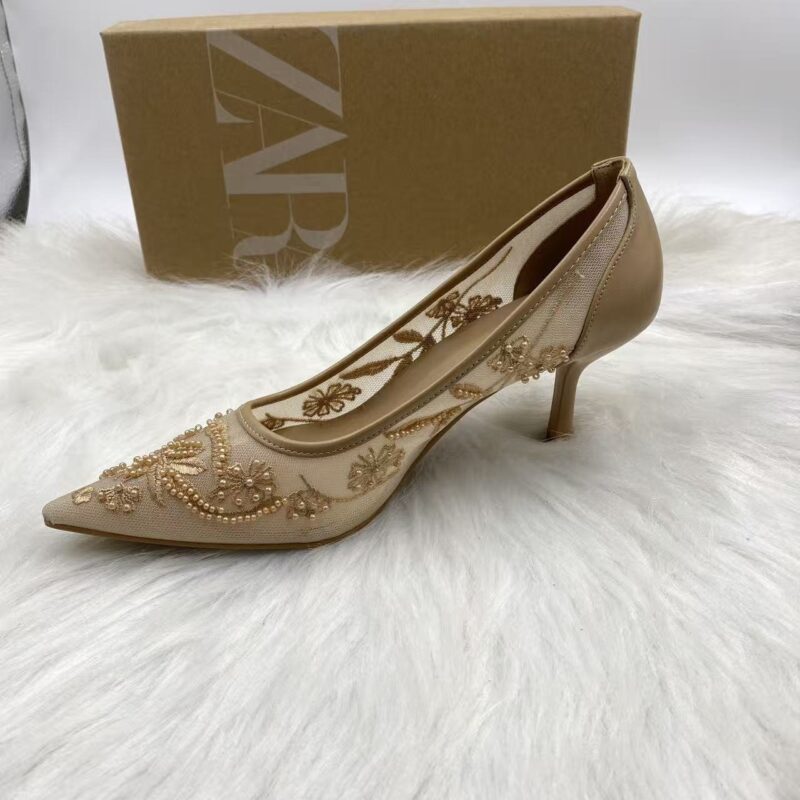 ZA New 2025 Summer Thin Heel Splicing with Brown Style High Heel Shoes