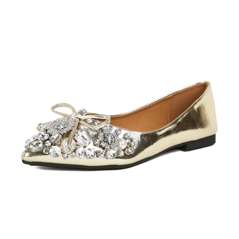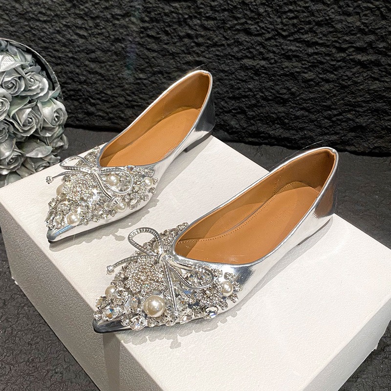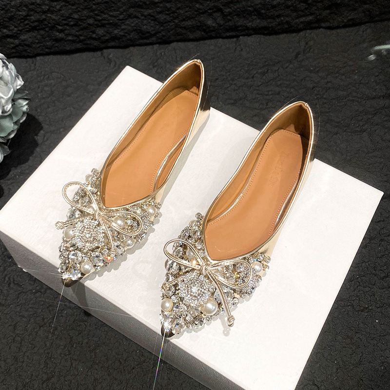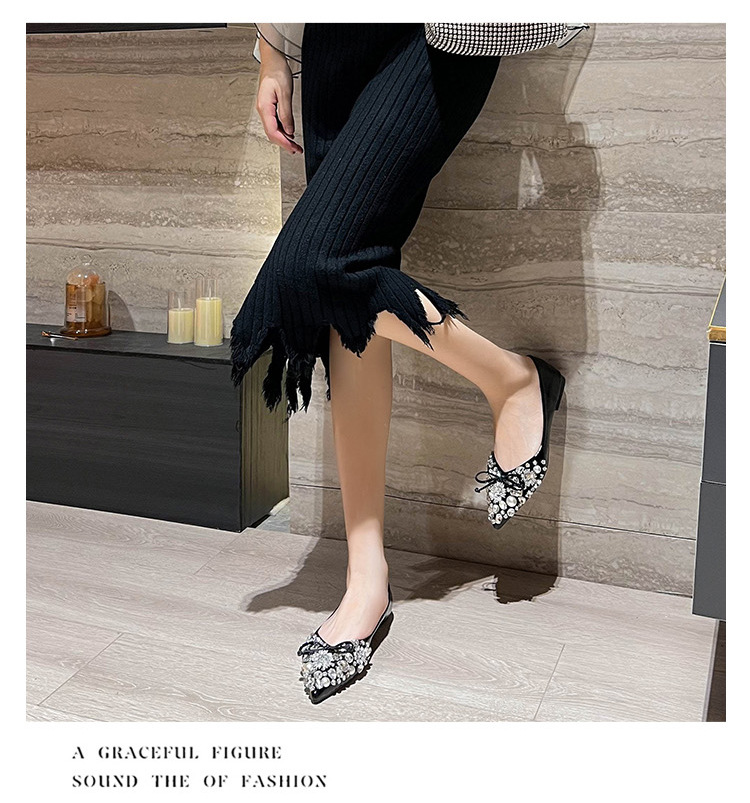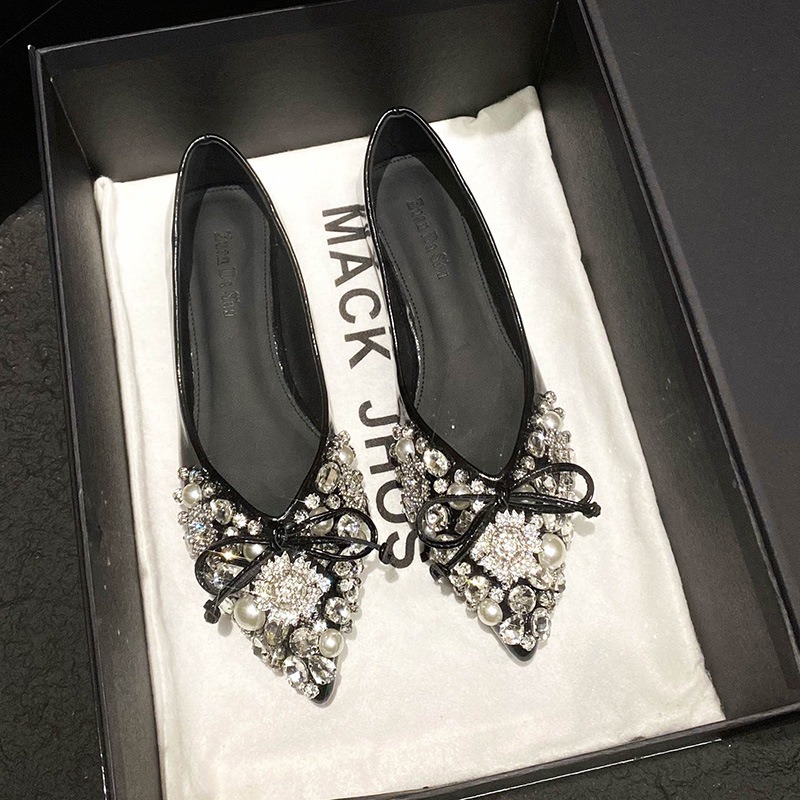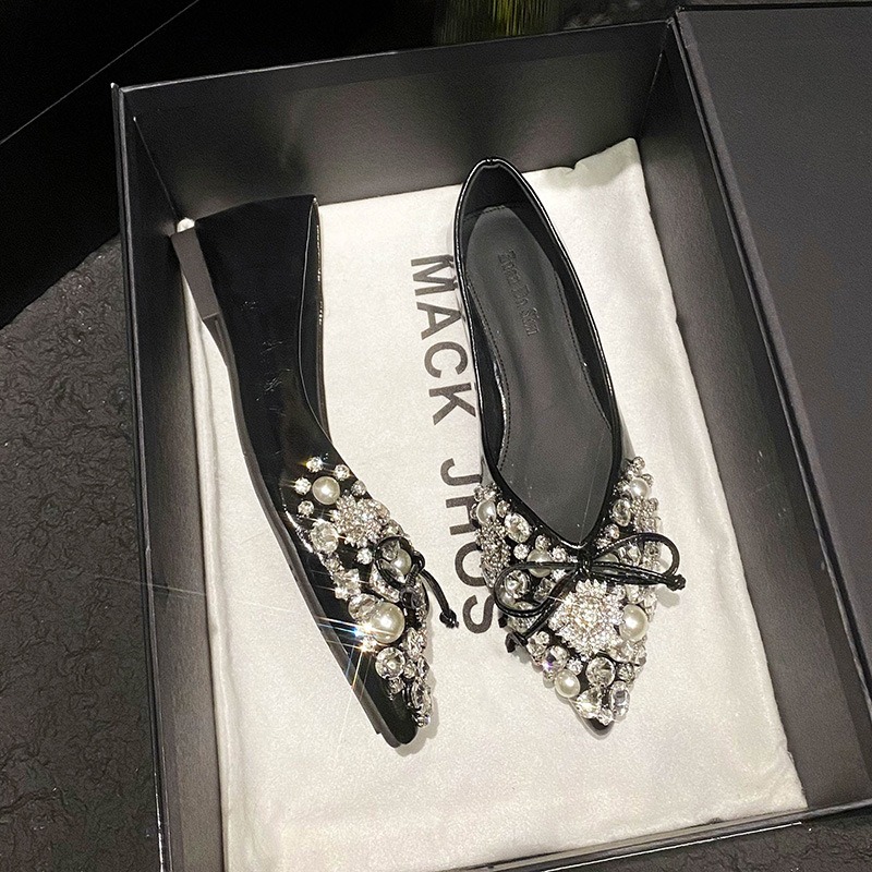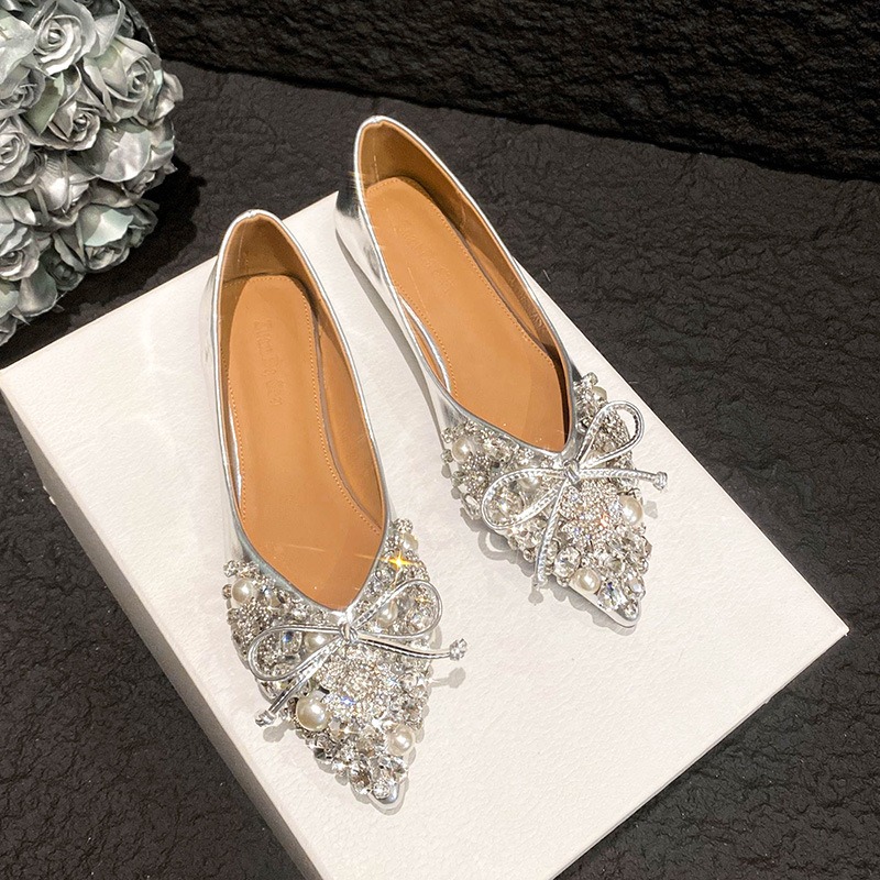 2025 new pointed bowknot shoes for women all-match shallow rhinestone fairy shoes flat bottom large size women's shoes 41 to 43
