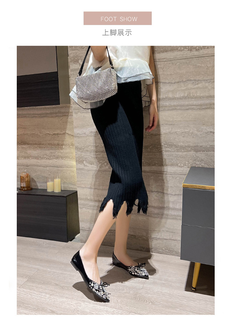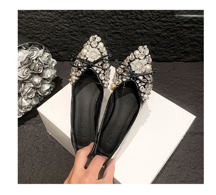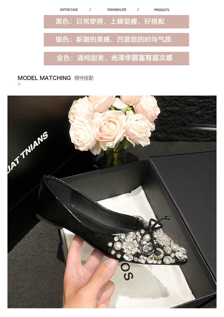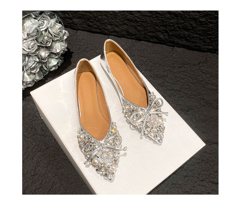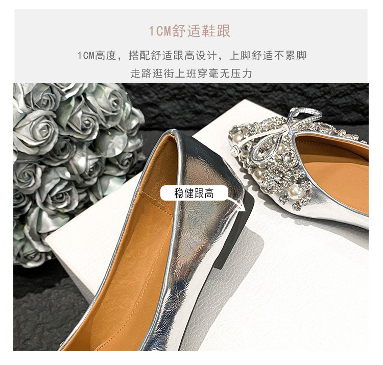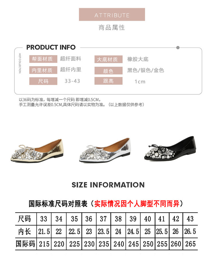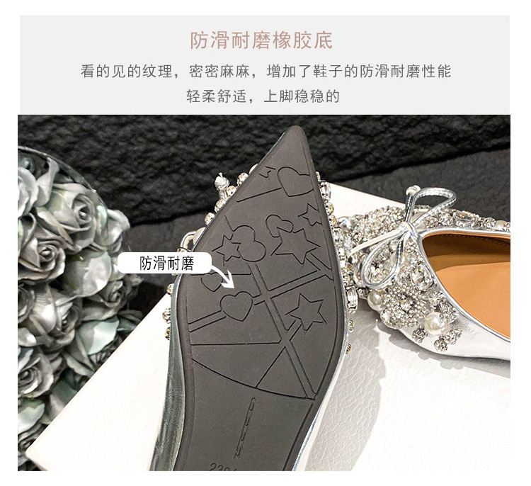 2025 new pointed bowknot shoes for women all-match shallow rhinestone fairy shoes flat bottom large size women's shoes 41 to 43