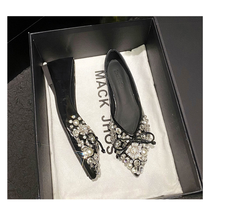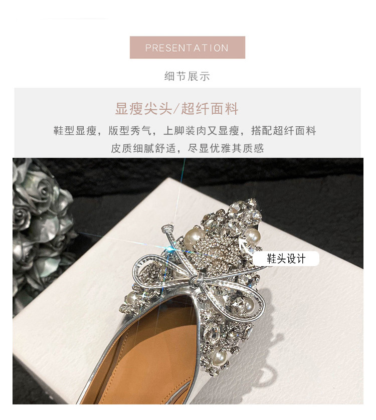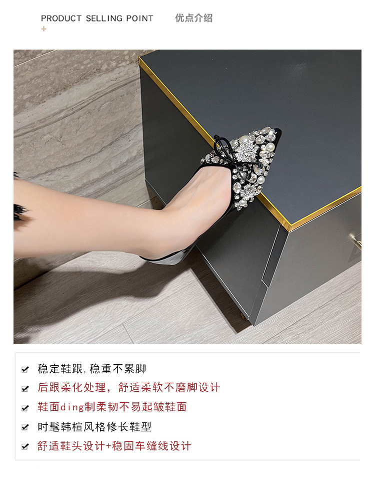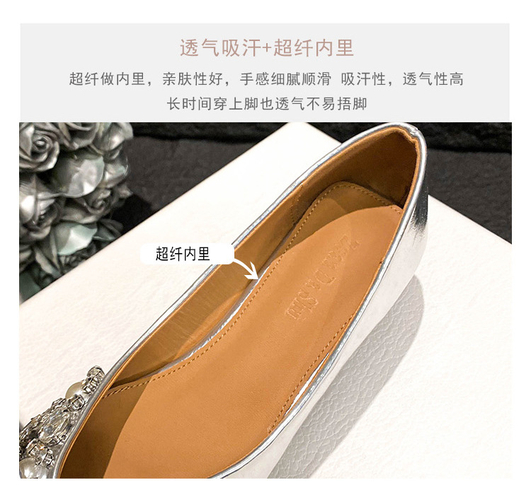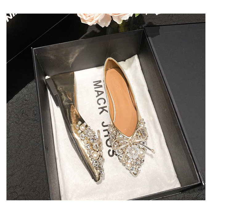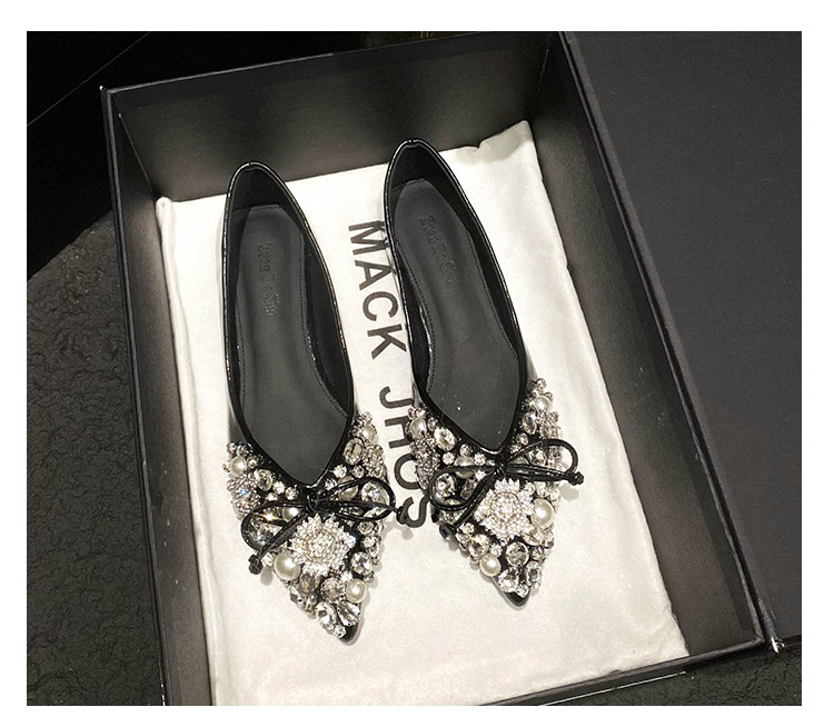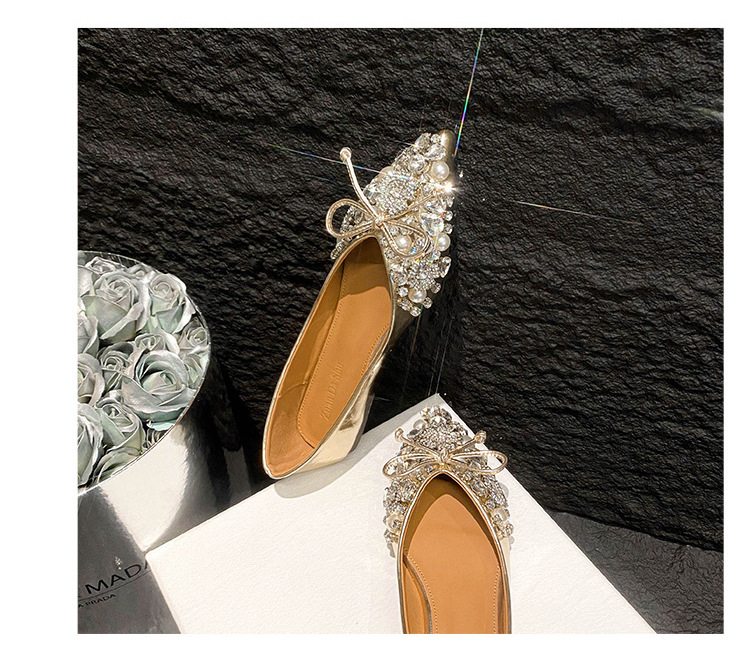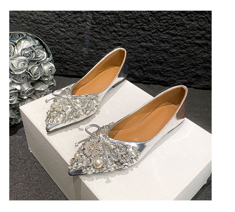 2025 new pointed bowknot shoes for women all-match shallow rhinestone fairy shoes flat bottom large size women's shoes 41 to 43