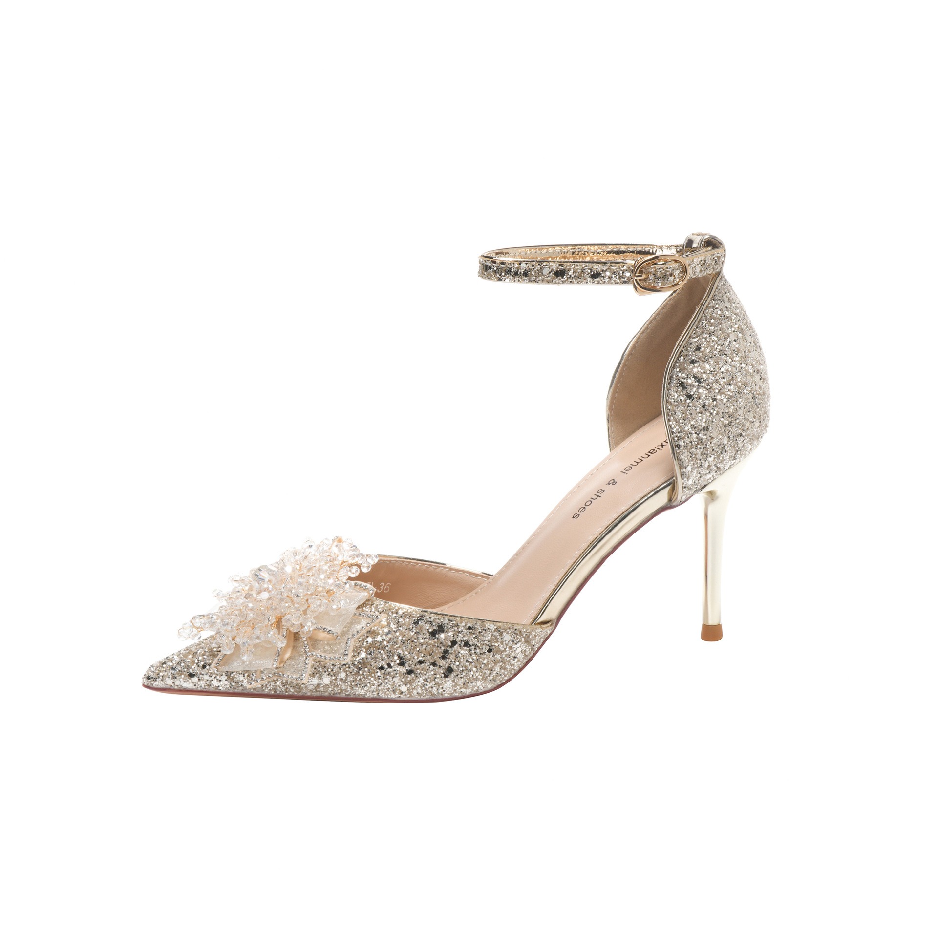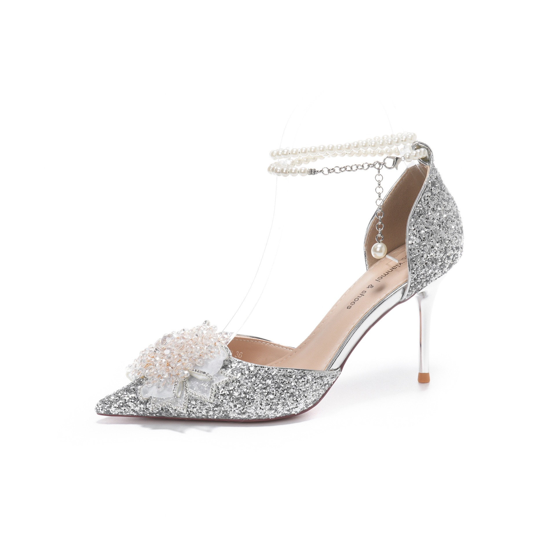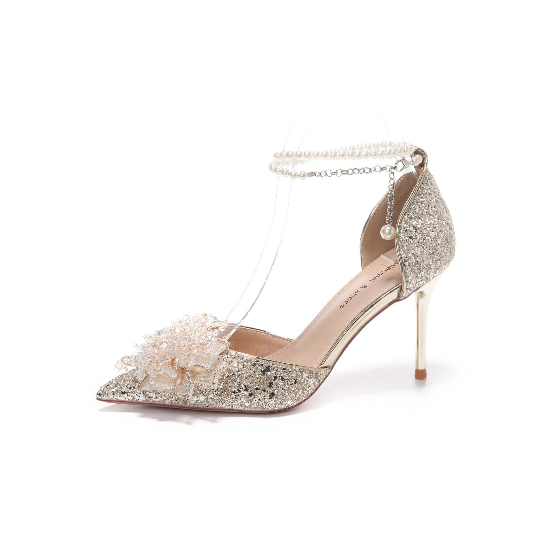 6692-15-078 High heels women's sequined hollow sandals with pearl chain rhinestone wedding shoes banquet dress