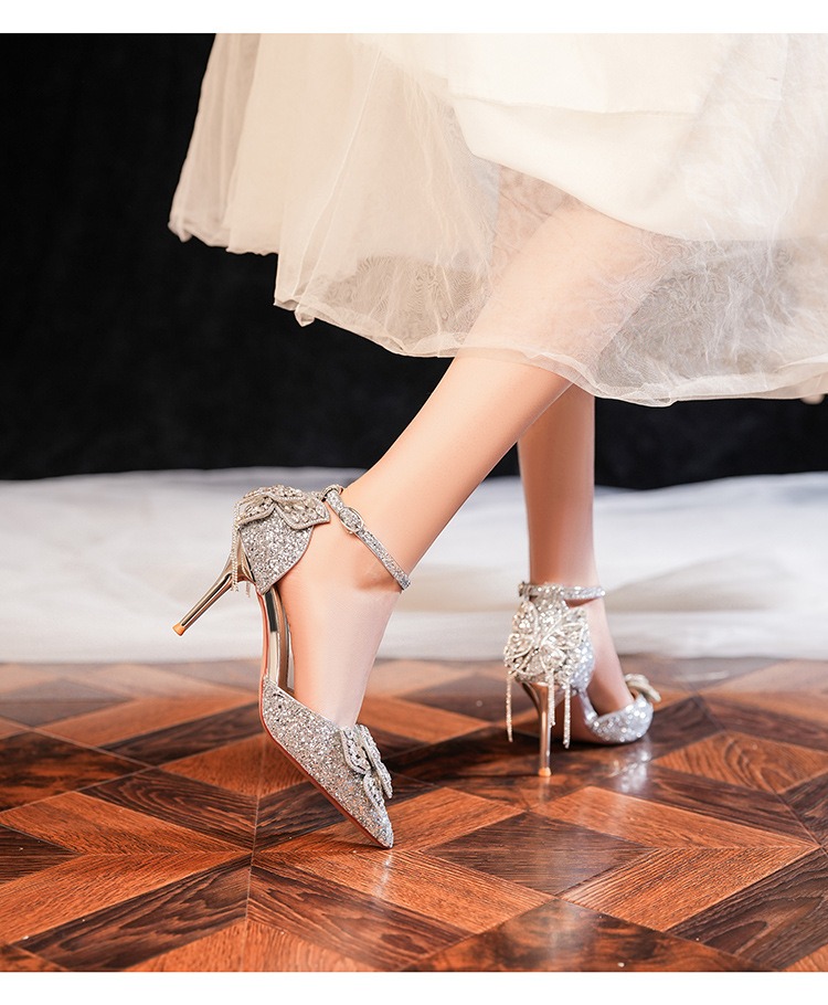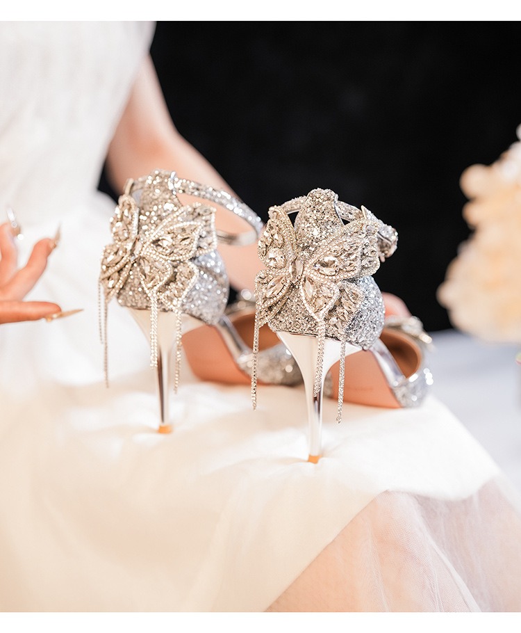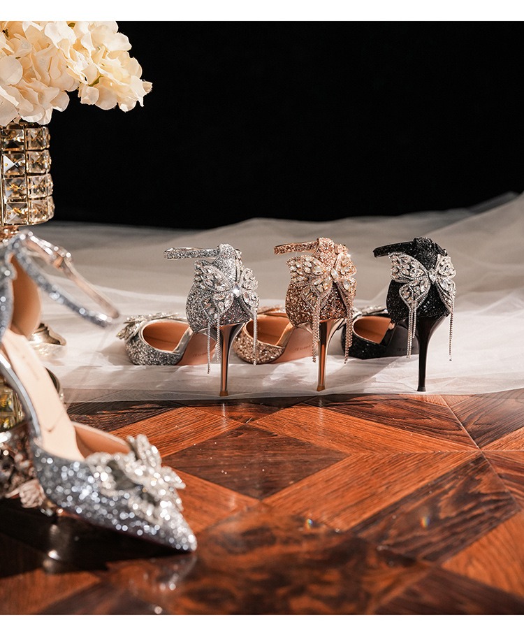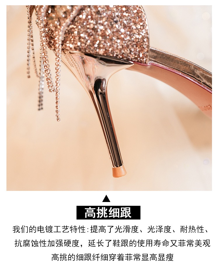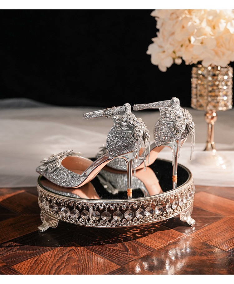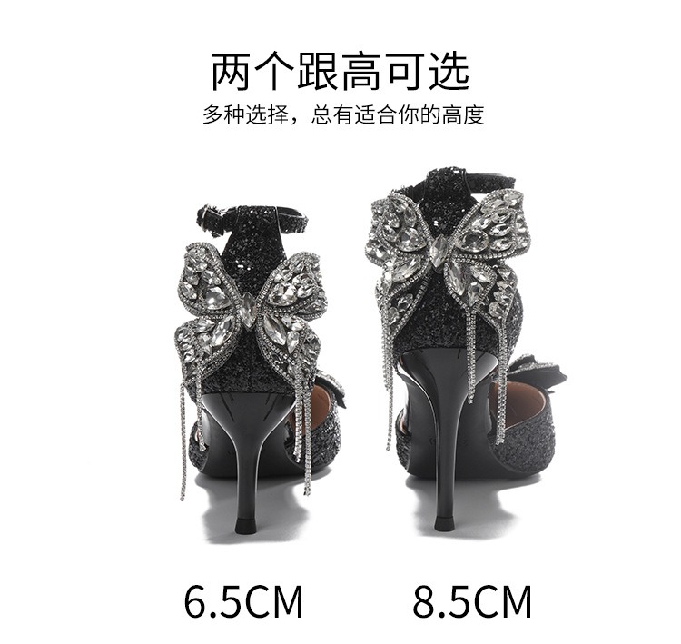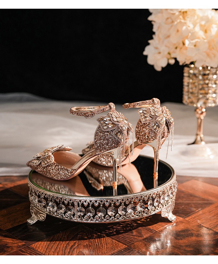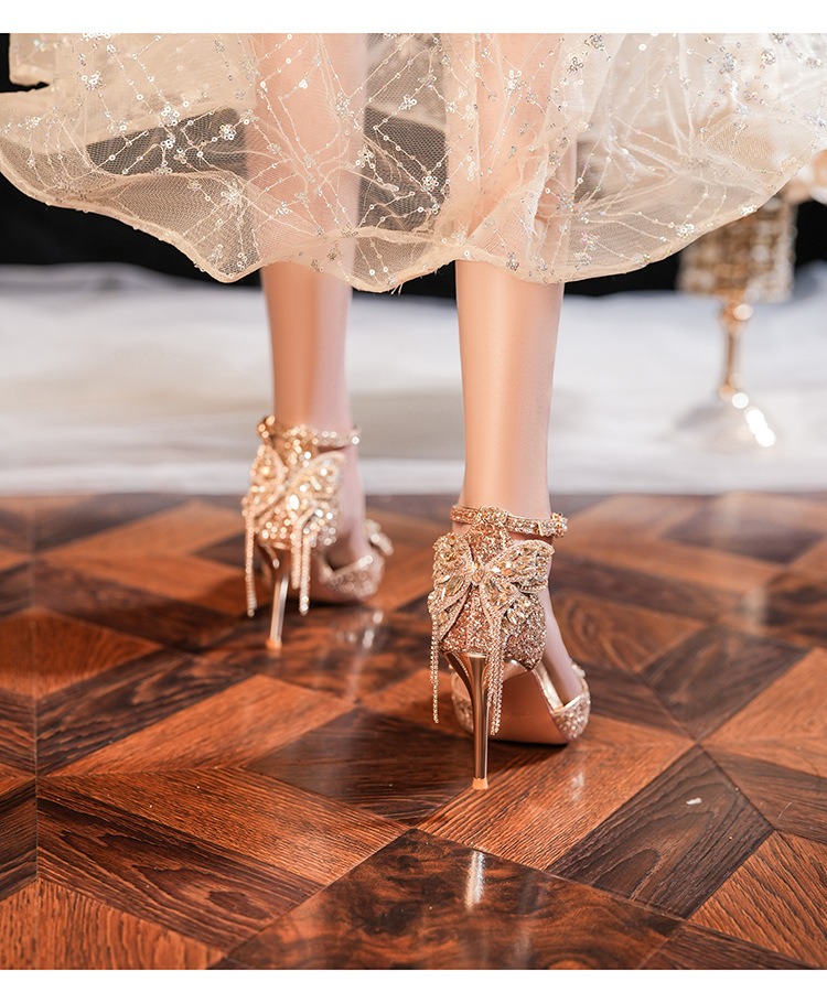 6692-2-099 Sequined rhinestone bow tassel hollow sandals wedding shoes luxury banquet dress women's shoes
