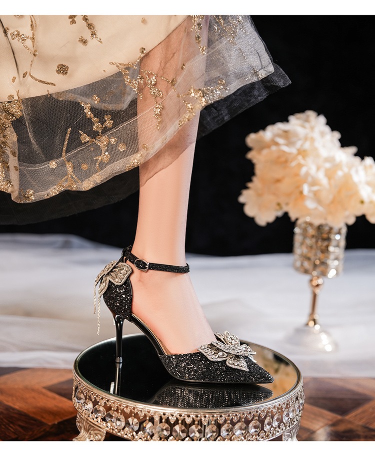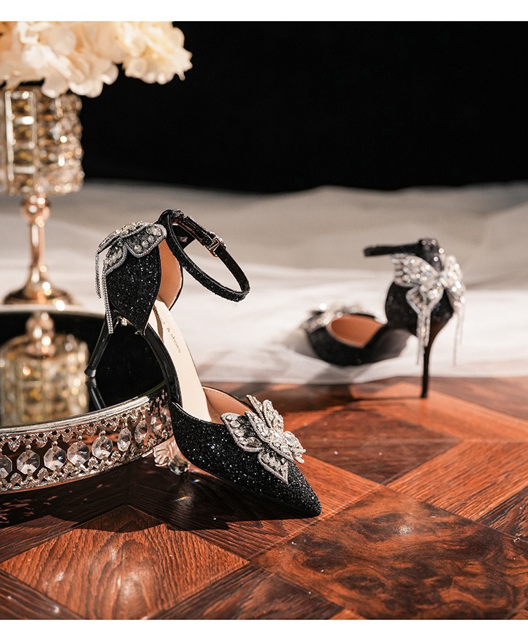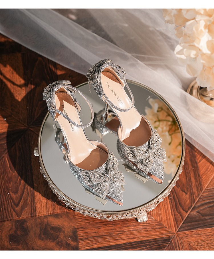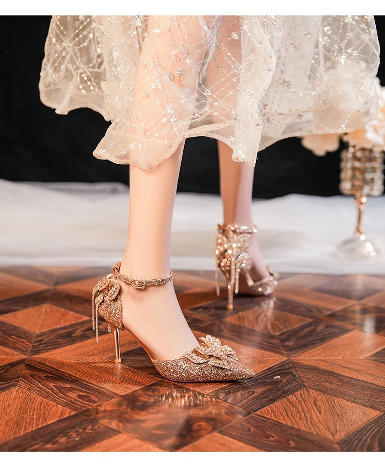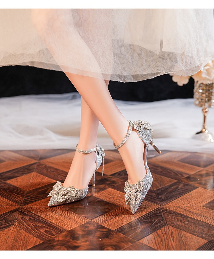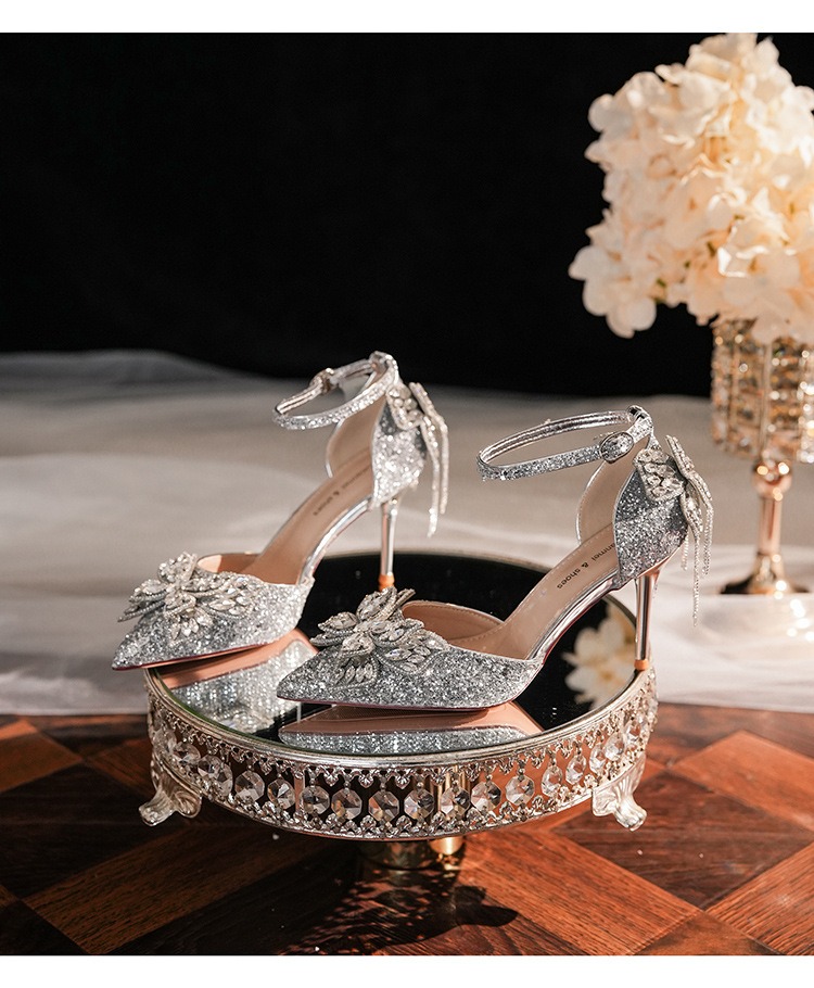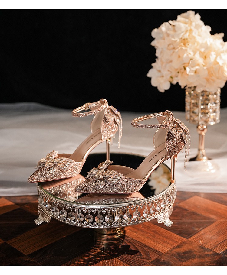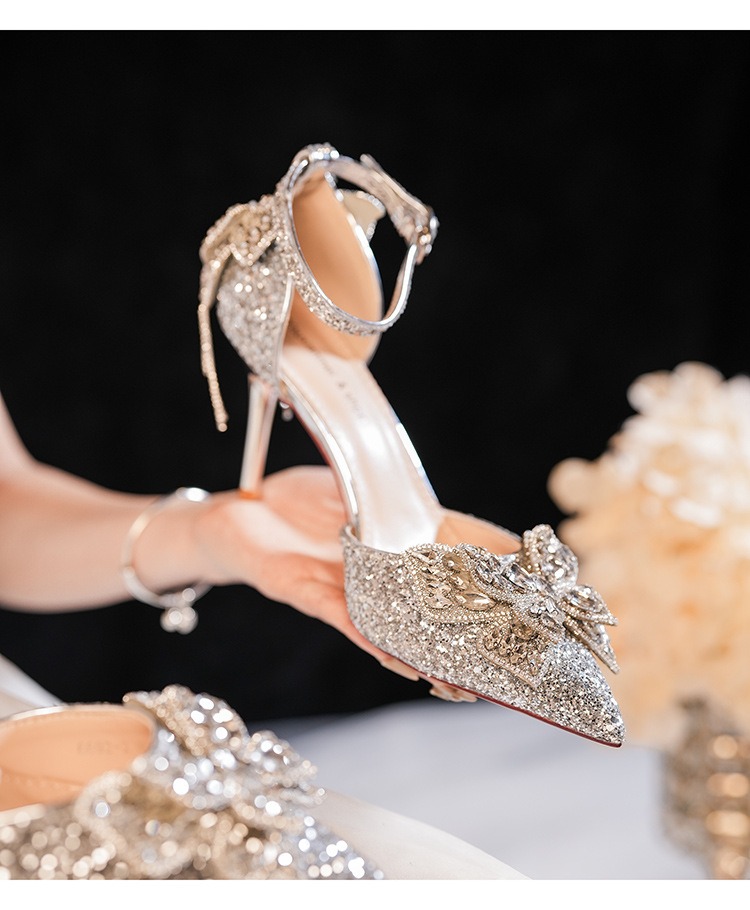 6692-2-099 Sequined rhinestone bow tassel hollow sandals wedding shoes luxury banquet dress women's shoes