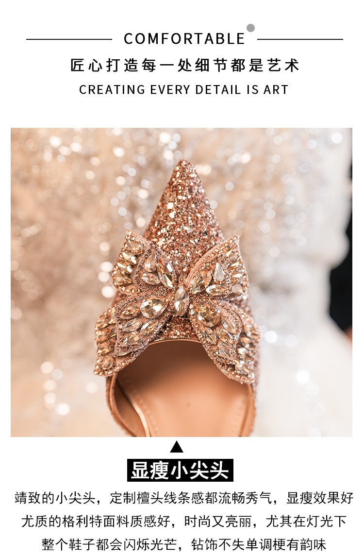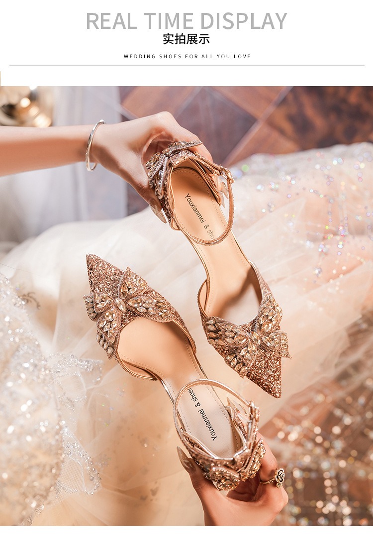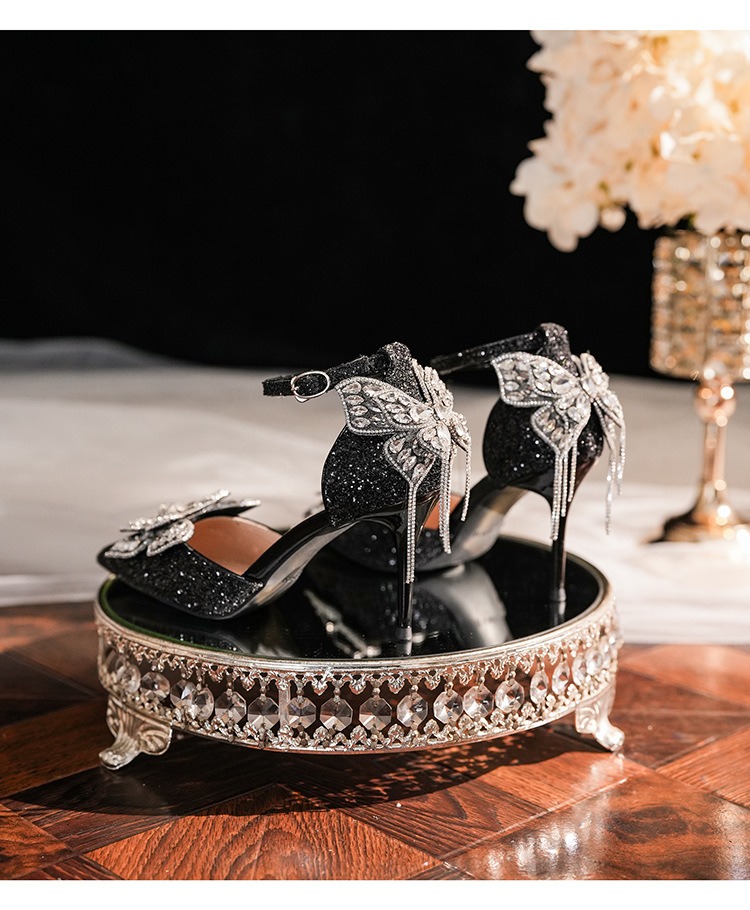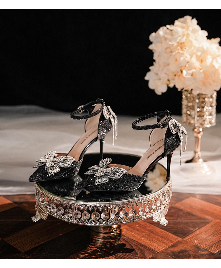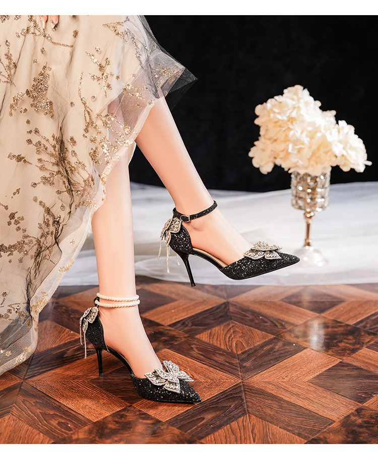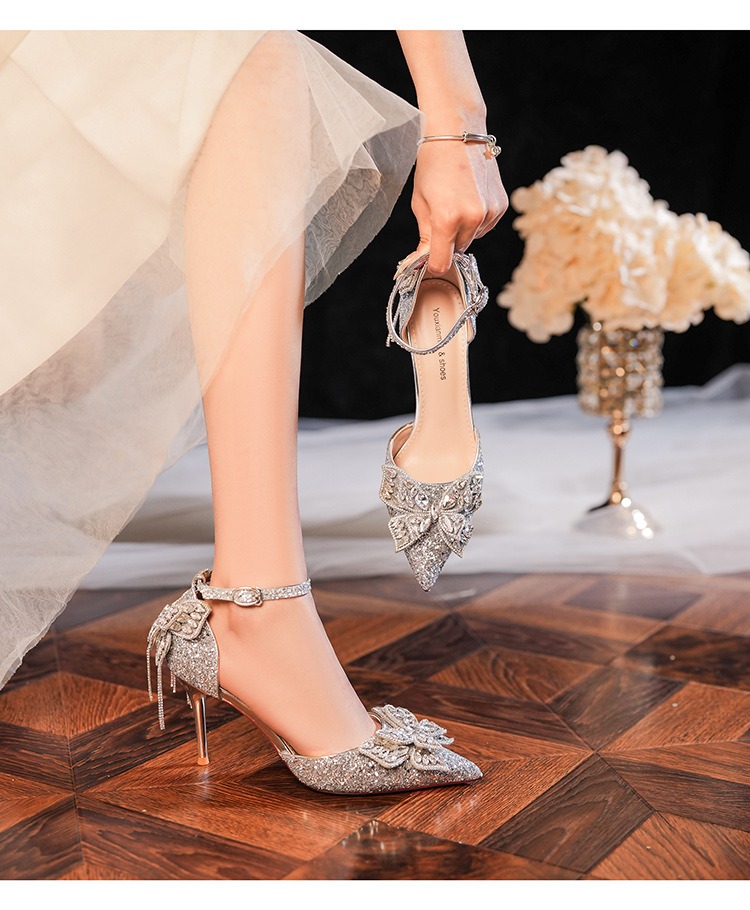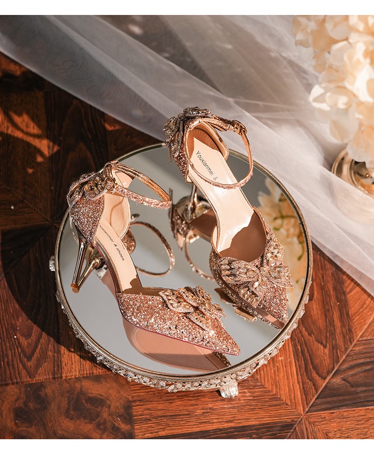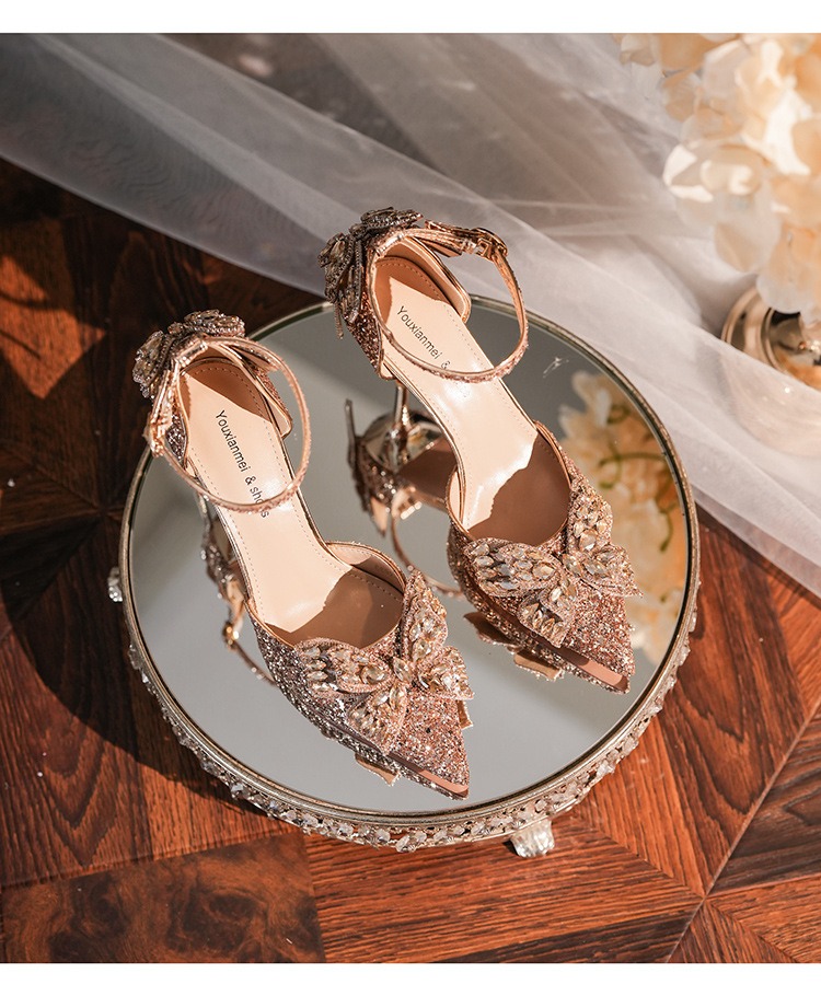 6692-2-099 Sequined rhinestone bow tassel hollow sandals wedding shoes luxury banquet dress women's shoes