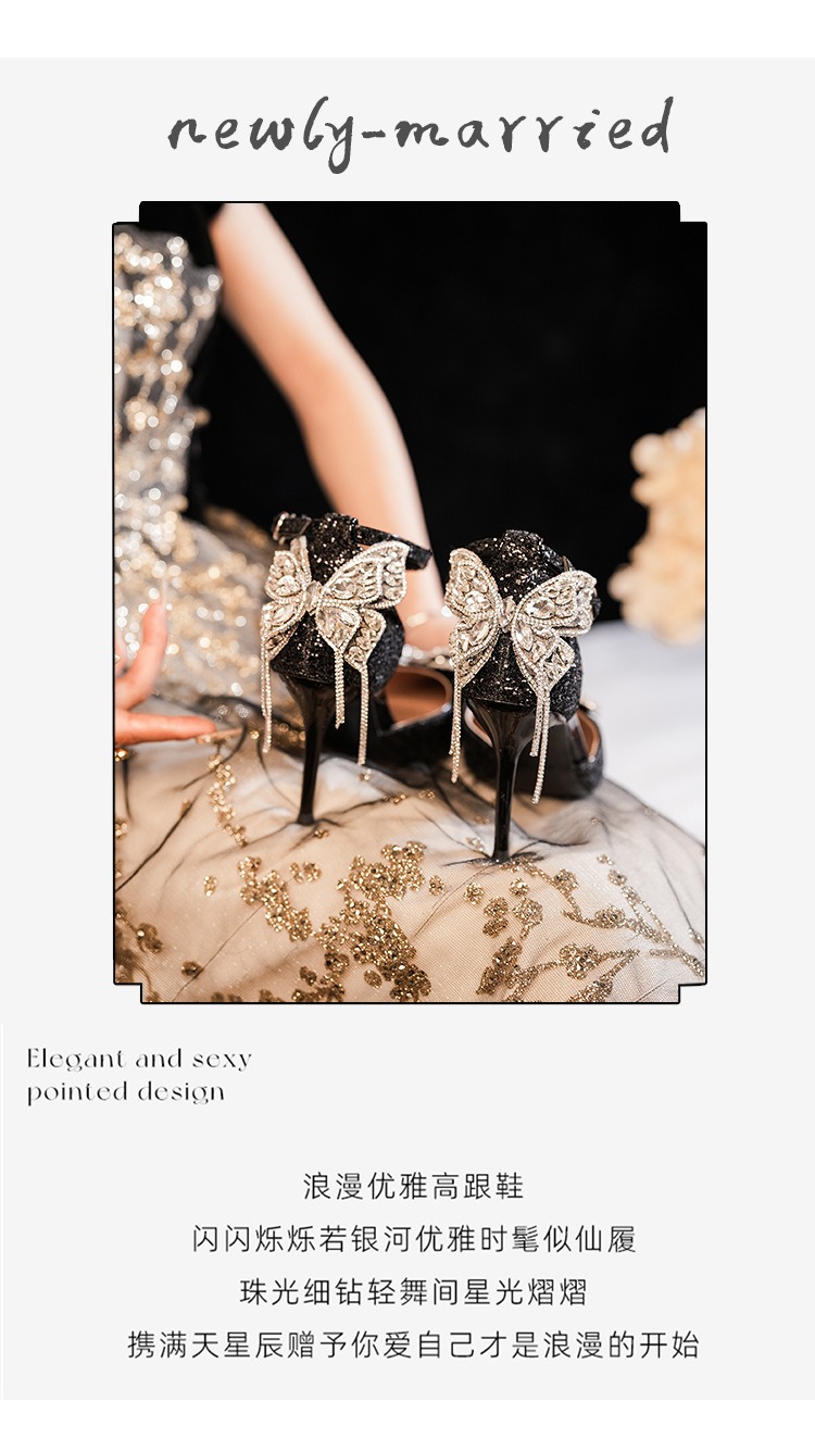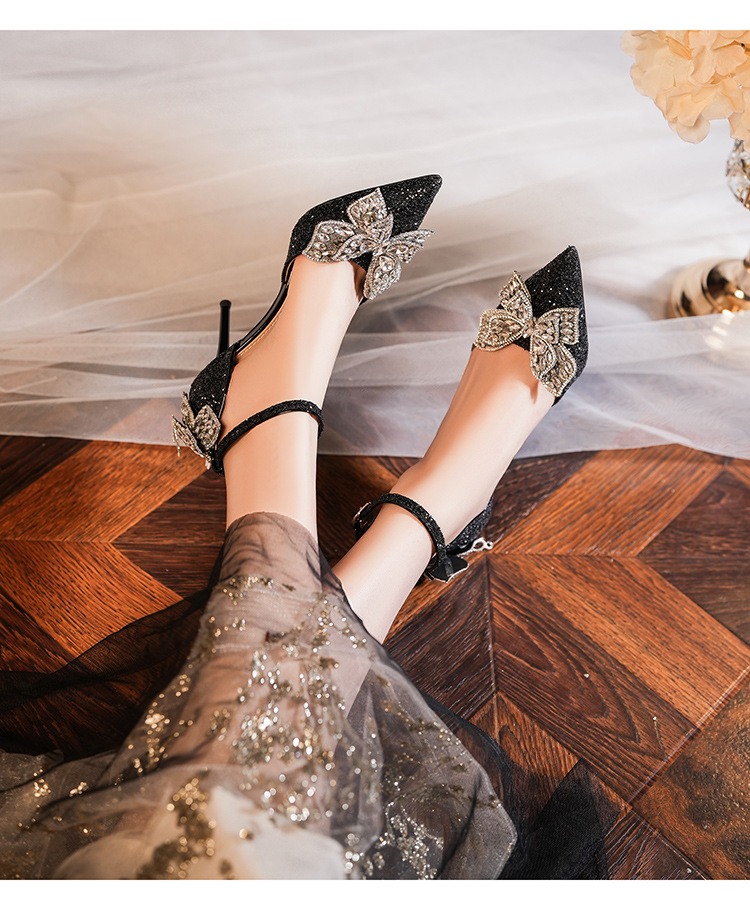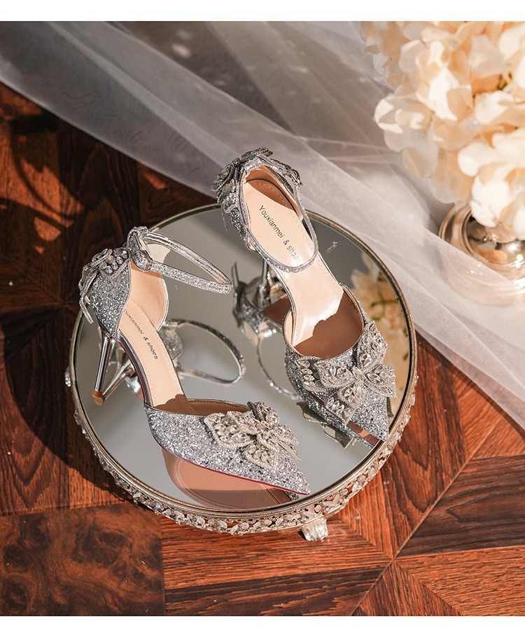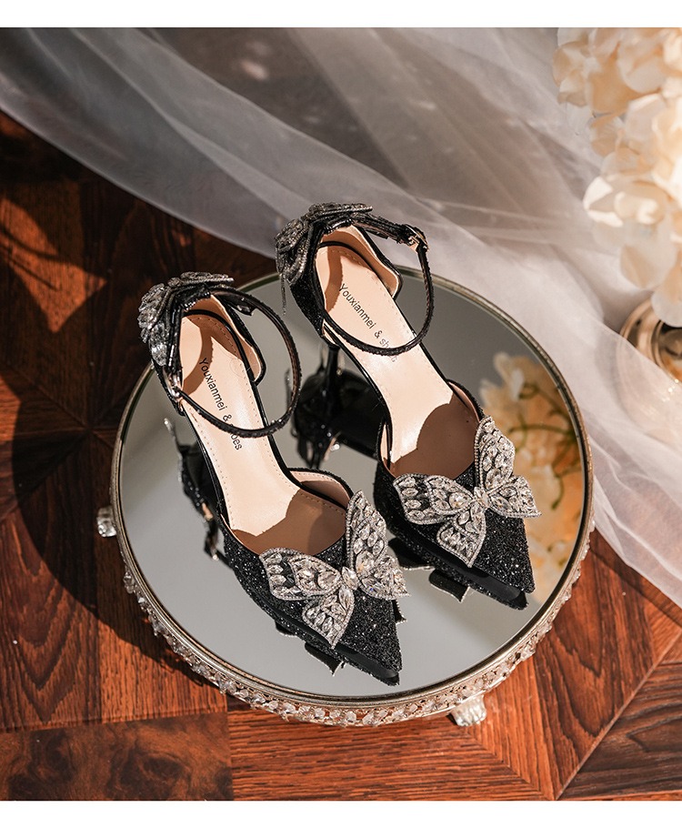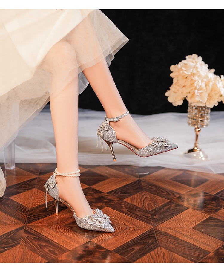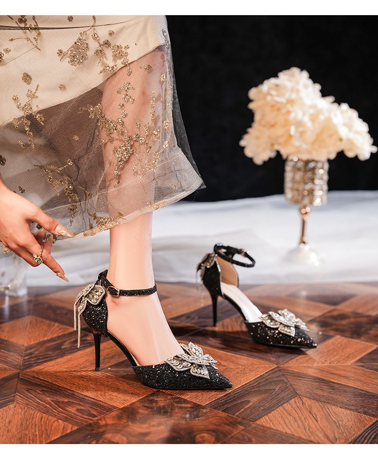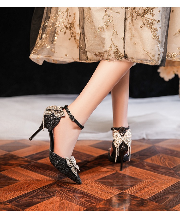 6692-2-099 Sequined rhinestone bow tassel hollow sandals wedding shoes luxury banquet dress women's shoes