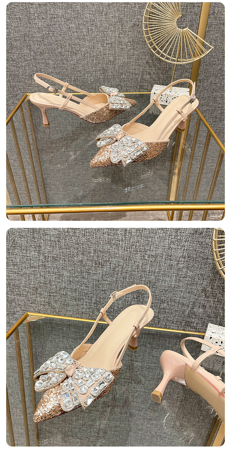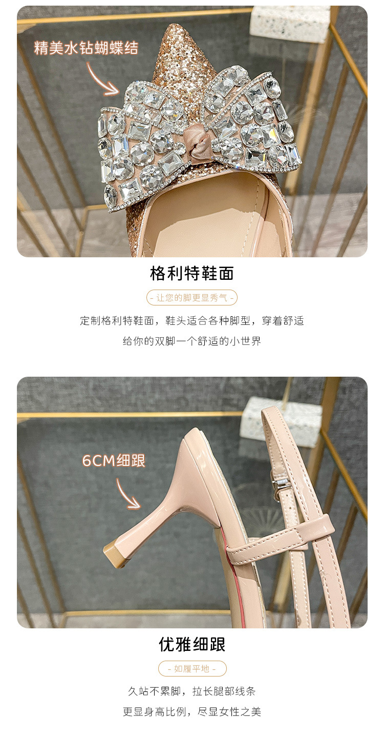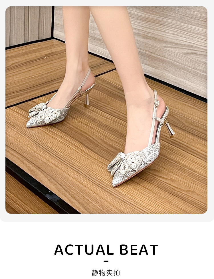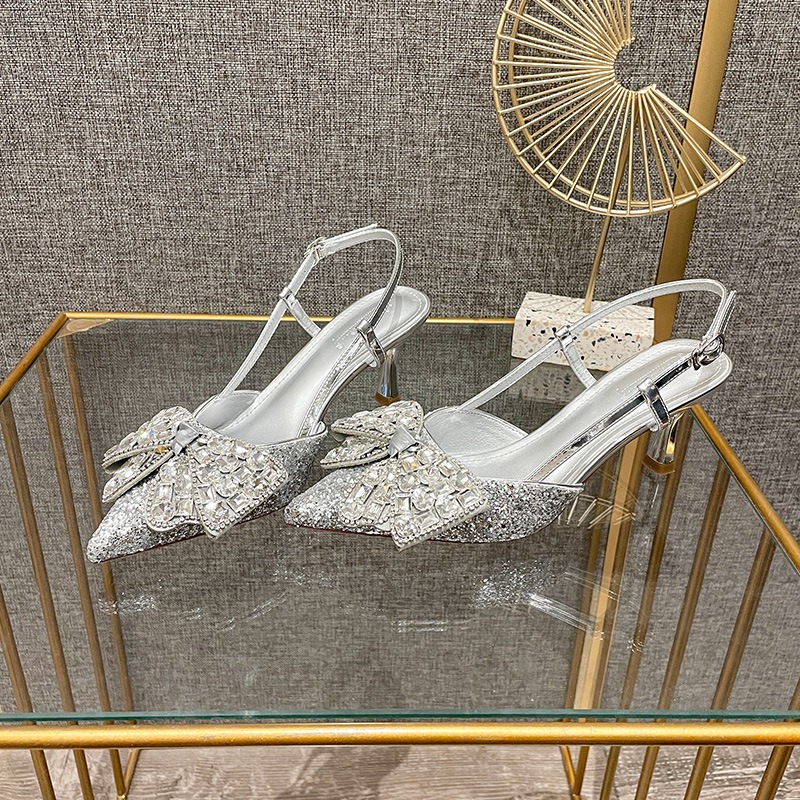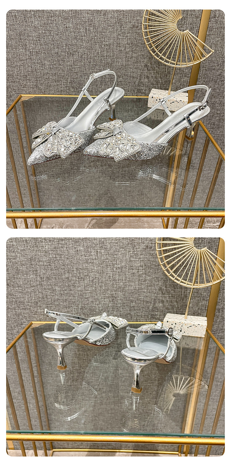 Crystal wedding shoes, elegant new style wedding dress high heels, bridal shoes, pointed high heel sandals, fashionable and versatile, daily trend
