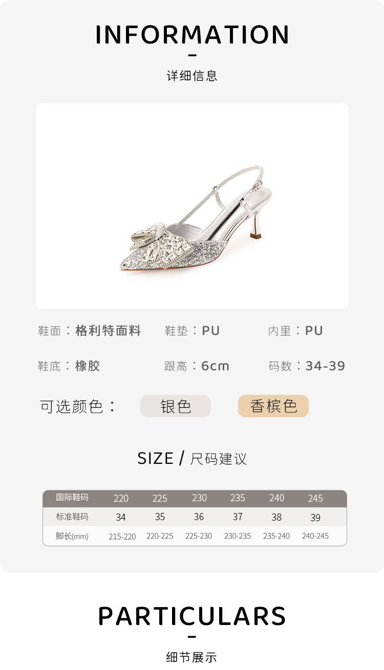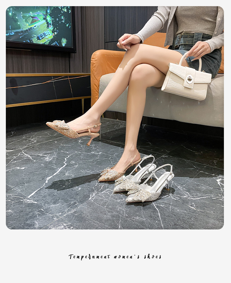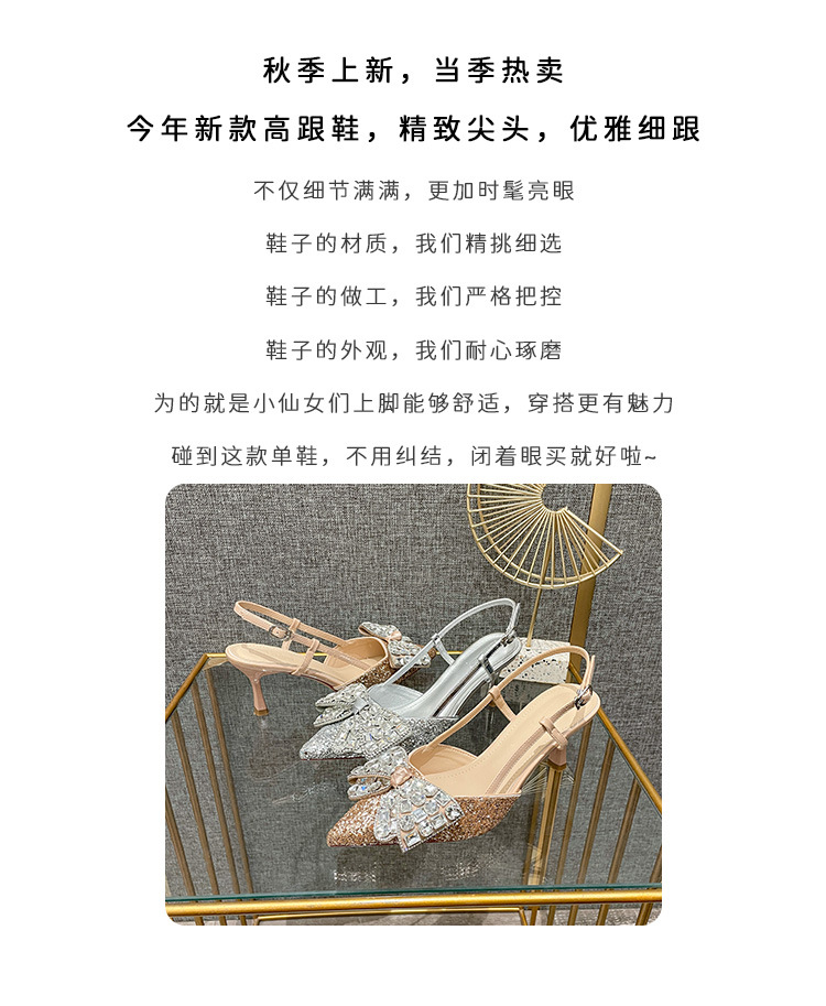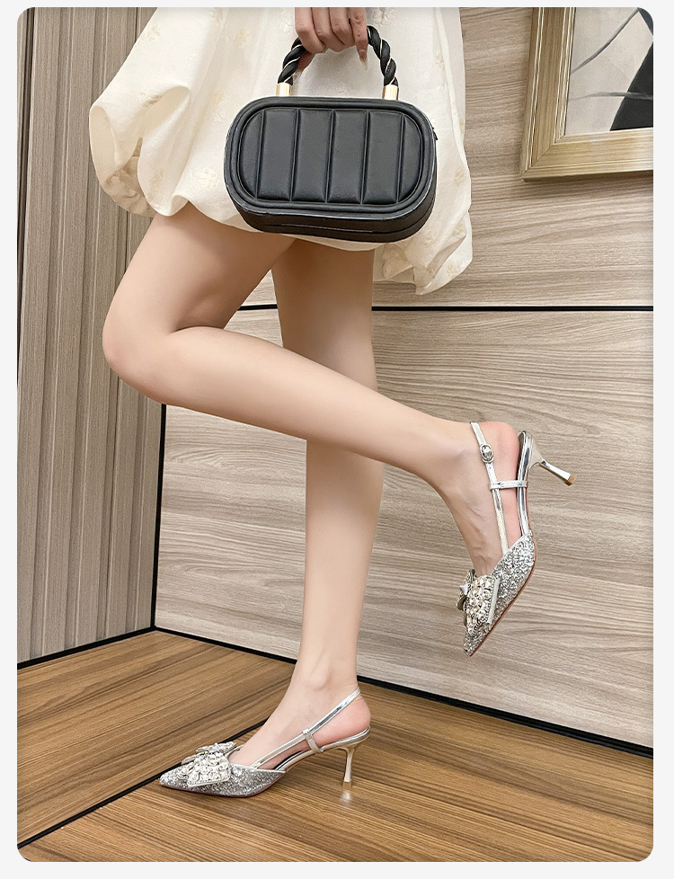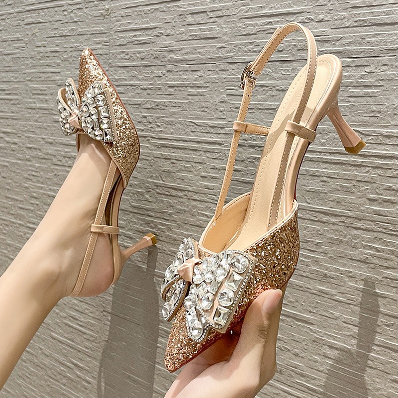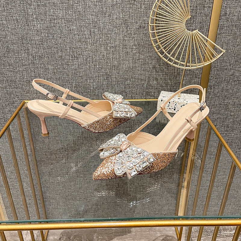 Crystal wedding shoes, elegant new style wedding dress high heels, bridal shoes, pointed high heel sandals, fashionable and versatile, daily trend