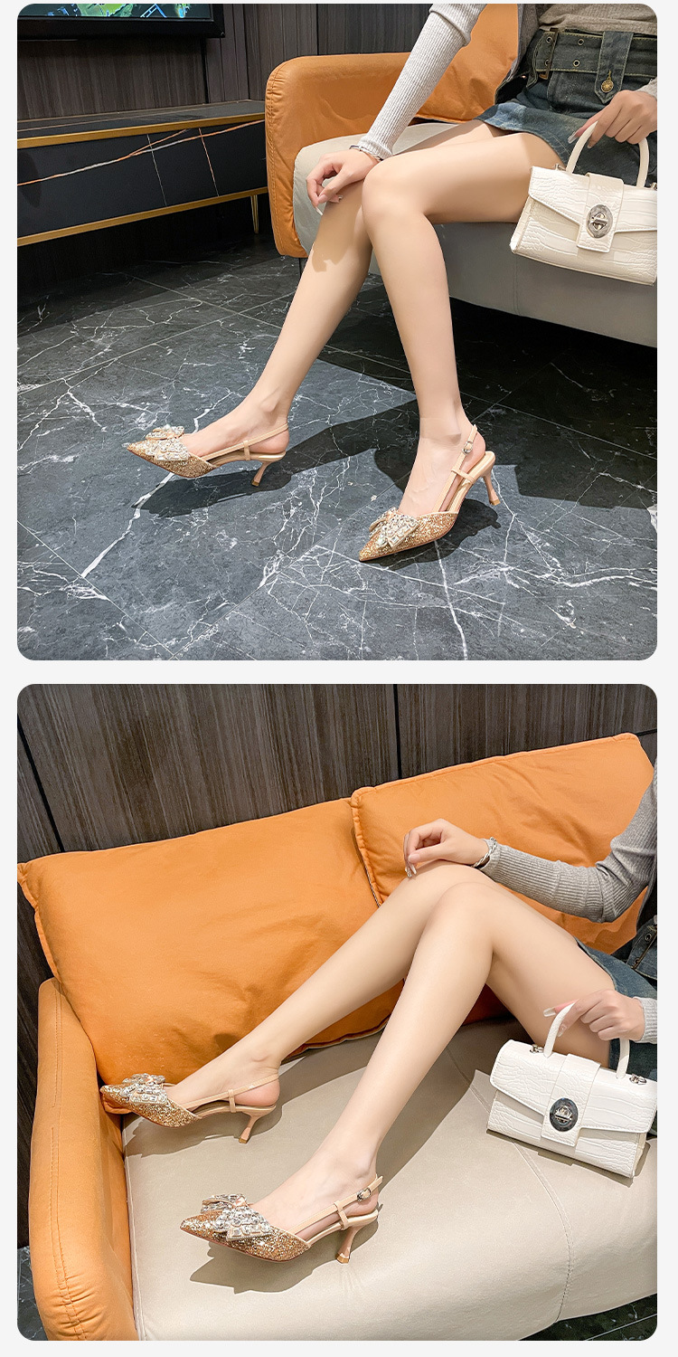Back empty toe sandals 2023 spring new AliExpress high heels cross-border women’s shoes pointed toe stiletto mid-heeled shoes