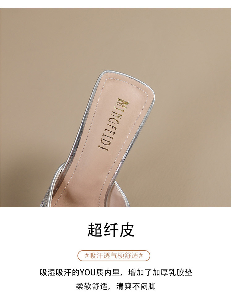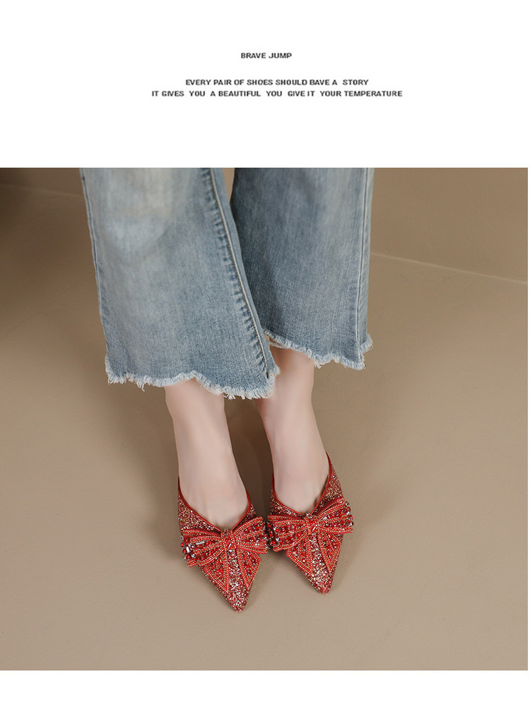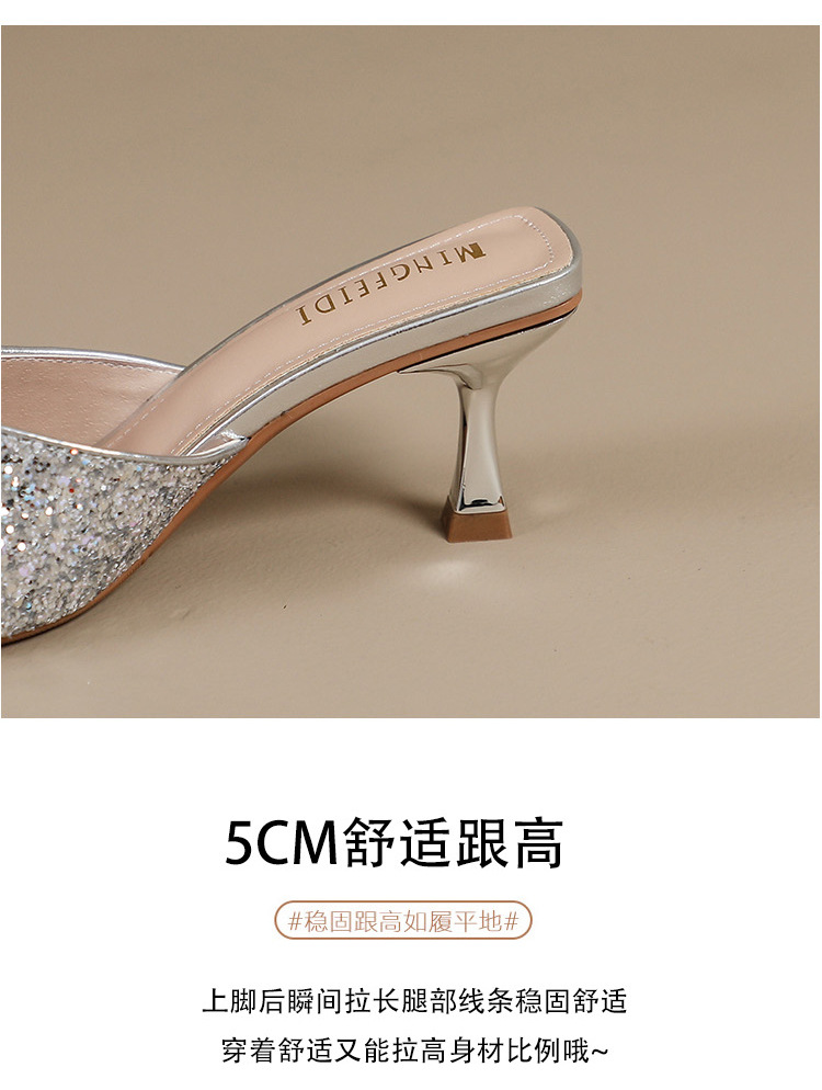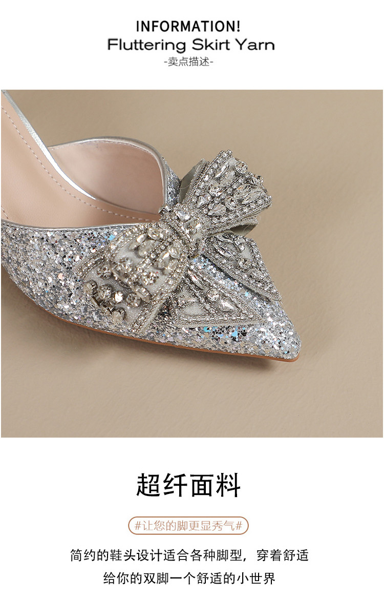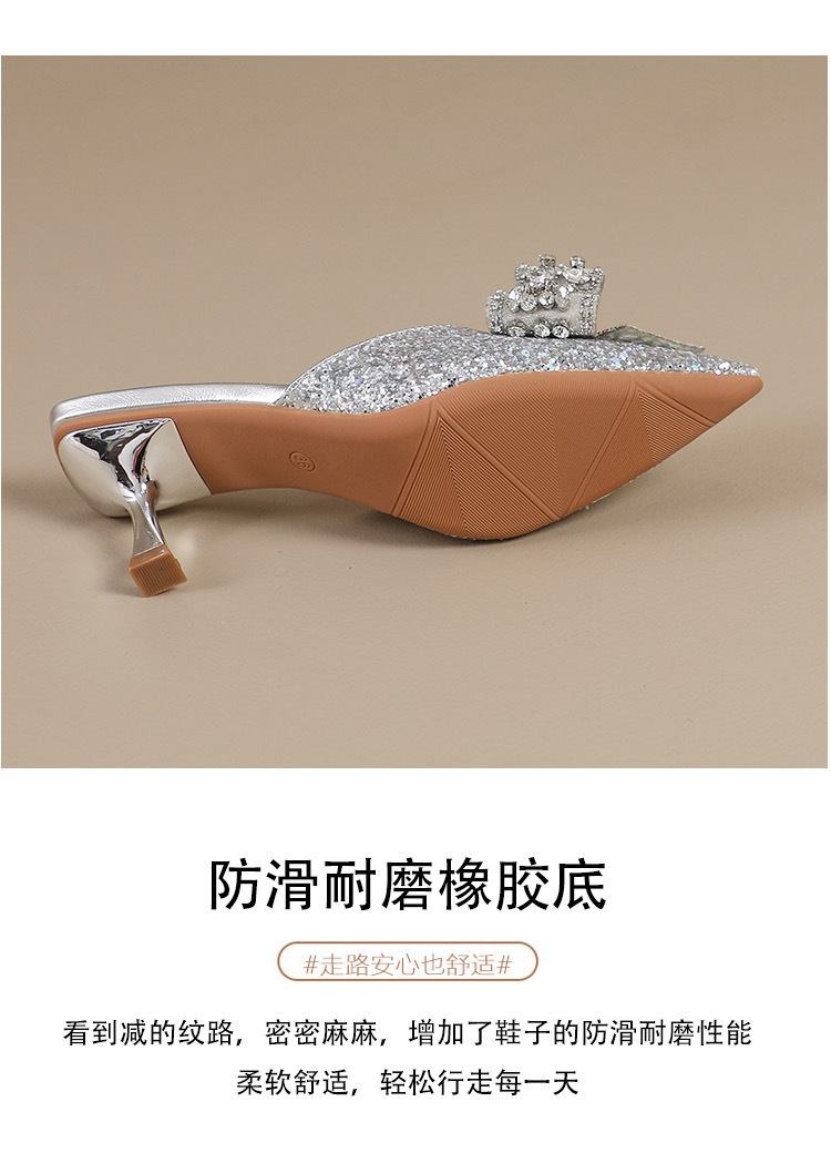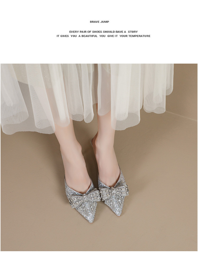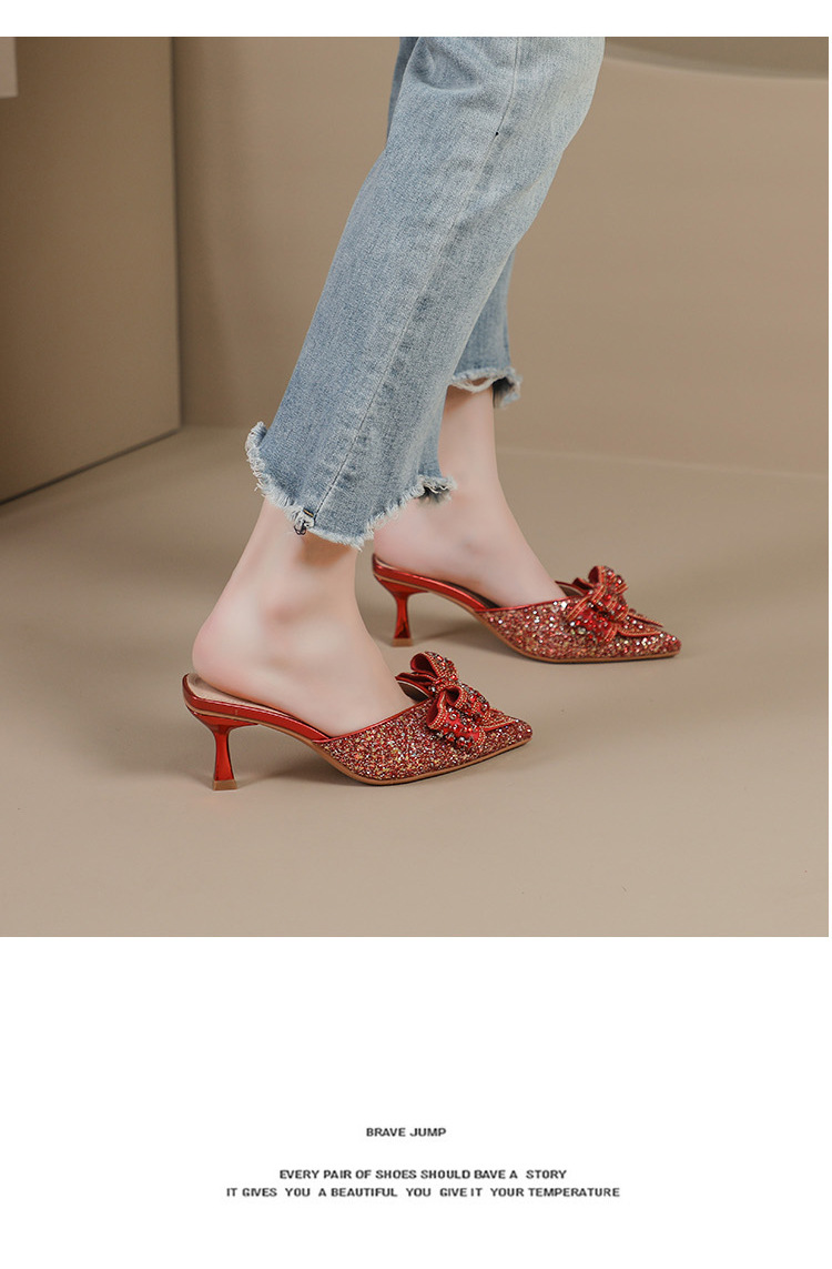 Rhinestone bowknot half slippers for women summer outdoor wear 2024 new pointed stiletto high heel temperament sandals